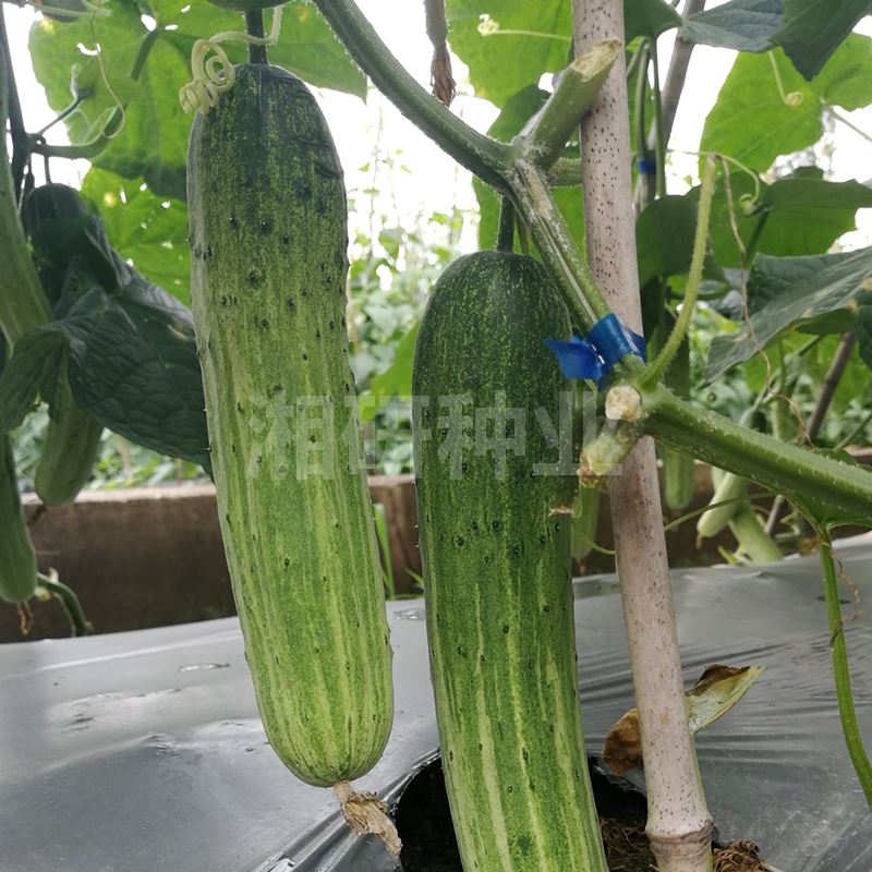 早熟,強雌性。以主蔓結(jié)瓜為主,主蔓第一雌花著生于第3-4節(jié),連續(xù)坐果能力強,前期產(chǎn)量高。不化瓜,不彎瓜,畸形瓜率低,不歇秧。瓜皮淺綠白色,圓筒形,無瓜把,長約20-24厘米,單瓜重約250克,腔小肉厚,無苦味瓜,口感脆嫩、汁多,黃瓜味濃,貨架期長。耐低溫弱光能力強。