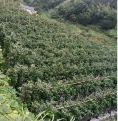 長(zhǎng)勢(shì)旺,株開(kāi)展,果色淺,果中長(zhǎng),掛果多